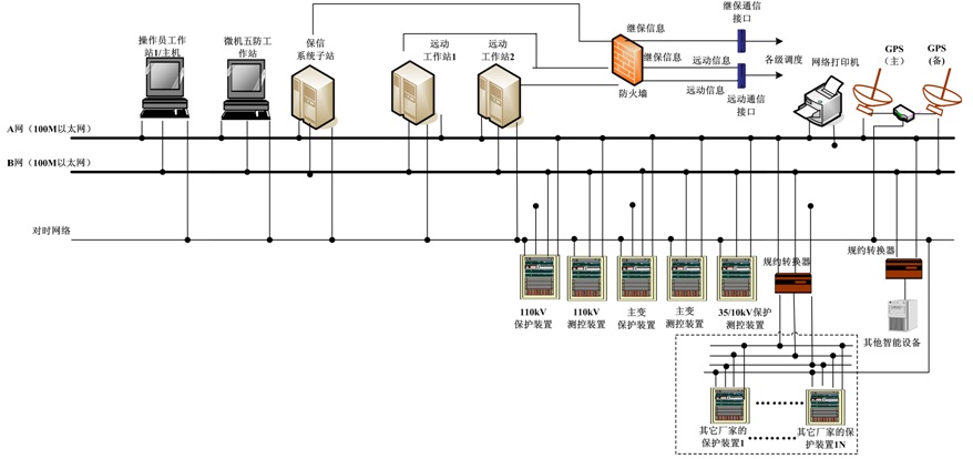 站控制層包括主機/操作員工作站、遠動工作站、保信系統子站、微機五防工作站、網絡交換機、打印機、GPS對時系統等為全所設備監視、測量、控制、管理的中心,通過網絡,接收保護裝置信息、現場采集的數字量、模擬量信息,以及向現場發布控制命令,并與遠方控制中心進行遠方數據通訊。操作員站和數據處理及通信單元均直接與測控單元(含測控保護單元)通信,當數據處理及通信裝置故障時,不影響操作員站的正常運行功能。